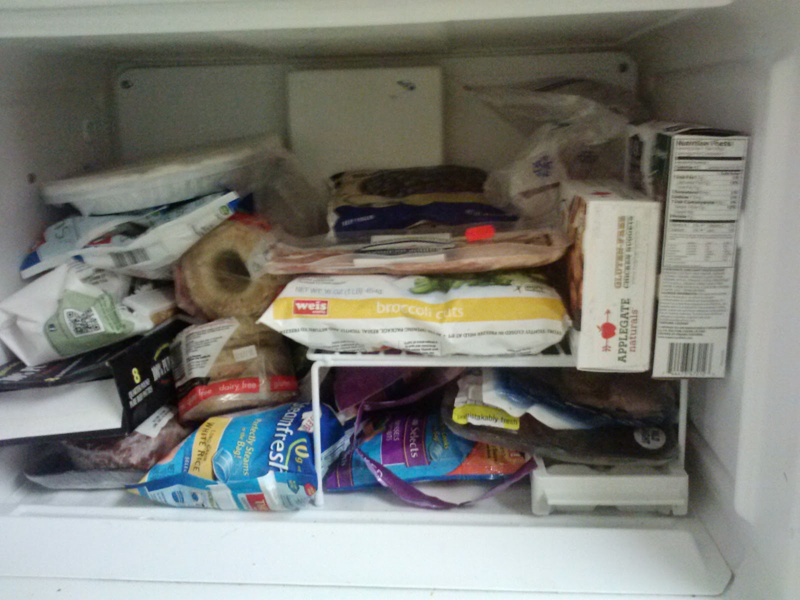 1) Fill your freezer…with cooked foods! I live alone now so filling my freezer with extra food has been an easy task. For example, if I buy a pound of ground beef, there’s no way I’ll come close to devouring that all myself. Hence, I used to cook half of the meat and then form the rest into hamburgers, throw them in a Ziploc freezer bag, date them with my trusty Sharpie, and throw them in the freezer. This is a logical thing to do…and I do still have a few frozen uncooked hamburger patties in there. However, when the power went out, I quickly realized that having a freezer full of uncooked meat is not at all helpful. Especially if the outage goes on so long that it thaws and spoils anyway. So now I always have a supply of already cooked and THEN frozen hamburger patties from my ground beef purchases. This came in handy during the cockroach crisis: just moved a frozen cooked burger into the fridge to thaw while I was at school and then a quick visit to the microwave when I came home had me ready for dinner. Also, I always have a few extra bags of frozen veggies…not that eating them after just thawing and not heating if there’s no power would be ideal, but at least I’d be getting some nutrients π