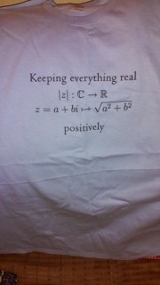 This is a t-shirt to support the “Keeping It Real” campaign. With math equations.