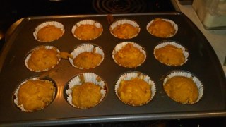 Mix all the ingredients. Pour into muffin pan and bake at 350 degrees for 10-12 minutes.