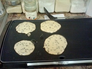 Thankfully, I stumbled across a book recently which has quickly become one of my top 10 life resources: Cooking for Isaiah. It’s written by a mom who wanted to cook great meals for her son who was diagnosed with food sensitivities to both gluten and dairy. There are few cookbooks I recommend (since most recipes can be found on blogs or pinterest these days) but this one I would absolutely order if you have gluten and dairy issues. I decided to adapt her recipe for chocolate chip pancakes…OH MY GOODNESS. I’m not kidding, these were some of the best pancakes I’ve had in my life. Gluten-filled ones included! If you have food allergies, do yourself a favor: make these, enjoy them, freeze some, love them again. It will, for a brief moment anyway, make you forget that you can’t partake in typical Sunday brunches anymore. If you don’t have food allergies, I’d still recommend them…but the ingredients required are not likely to be ones you have on hand in an average kitchen. In which case, I suggest you just need to come visit me for breakfast sometime. Seriously, I had visions of my own allergen-free bed-and-breakfast in my head all night.  The recipe is as follows: