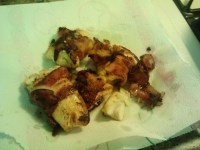 Hence, last night I had to get creative. I opened my fridge and saw the two things I had to make sure to cook by night’s end: tilapia and bacon. So I thought to myself: “There’s nothing I love more than scallops wrapped in bacon…so why not tilapia wrapped in bacon?”. (I know my cardiologist will be less than thrilled if he stumbles across this…) So that is what I did. SO EASY. SO SIMPLE. And SO DELICIOUS.