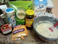 Now before I get too much farther down my tangent, this is supposed to be about food not television, so I promise I’m back. Last night, I decided to whip up one of my favorites to enjoy as I watched the Olympics: breakfast for dinner. I settled on pancakes, took out my new griddle, and set off on my adventure to recreate pancakes that would taste like their gluten-filled/soy-filled relatives. If gluten alone is your issue, get Gluten-Free Bisquick. It’s amazing and your pancakes will be too!! Unfortunately for my soy-free buddies, it’s emblazoned across the side : CONTAINS SOY. And corn. Sigh…