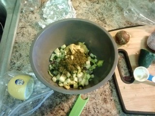 3. Add coconut flour, Old Bay, parsley, cilantro and mix.