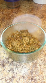 1 egg (or I used 1 Tbsp. flaxseed w/ 3 Tbsp. water as egg replacement)