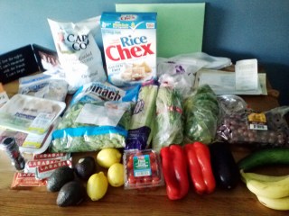 1) Make a List of Meals You Need: I knew I was leaving bright and early on a Sunday morning and coming home late on Friday night. That meant all 3 meals for 6 days. Here’s my loot from my grocery store run before the cooking marathon began!
